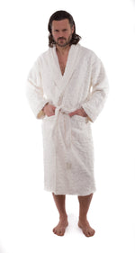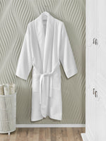 Boost your comfort as you step out of the shower and into this luxurious Home bathrobe featuring a soft and pleasant Turkish cotton construction. A waffle weave gives this bathrobe a modern look, and a tie belt offers an adjustable unisex design. Eco-friendly and machine washable, this robe provides practical use and convenience.